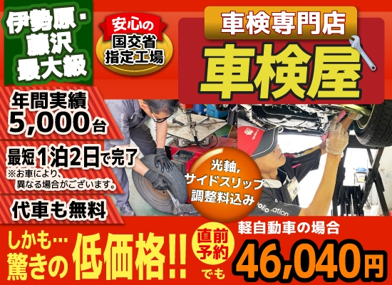 伊勢原・藤沢・寒川・秦野・平塚の格安車検4.5万