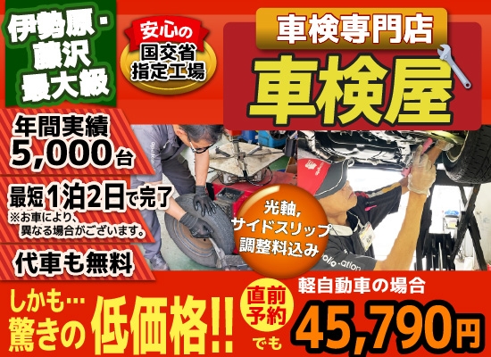 伊勢原・藤沢・寒川・秦野・平塚の格安車検4.6万