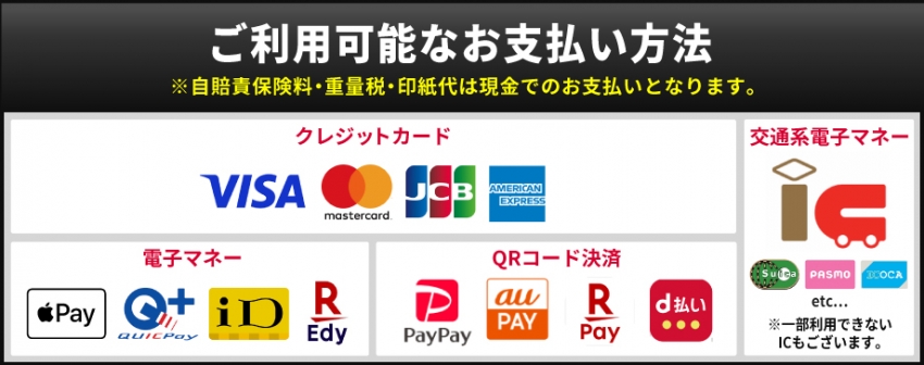 ※自賠責保険料・重量税・印紙代は現金でのお支払いとなります。