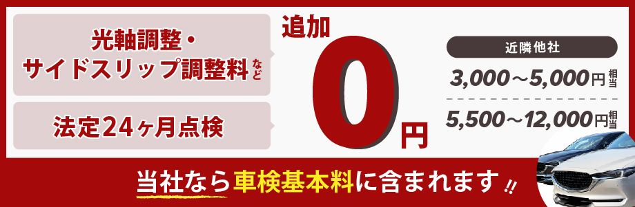 当店なら光軸調整・サイドスリップ等の各種調整料 追加0円!(他社3,000円~5,000円相当)