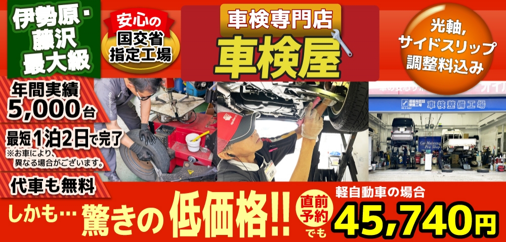 伊勢原・藤沢・寒川・秦野・平塚の格安車検4.5万