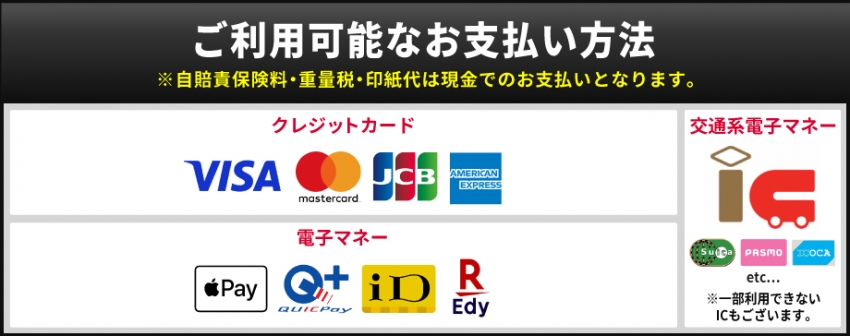 ※自賠責保険料・重量税・印紙代は現金でのお支払いとなります。